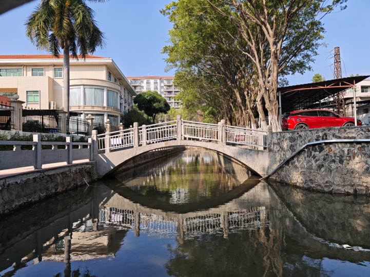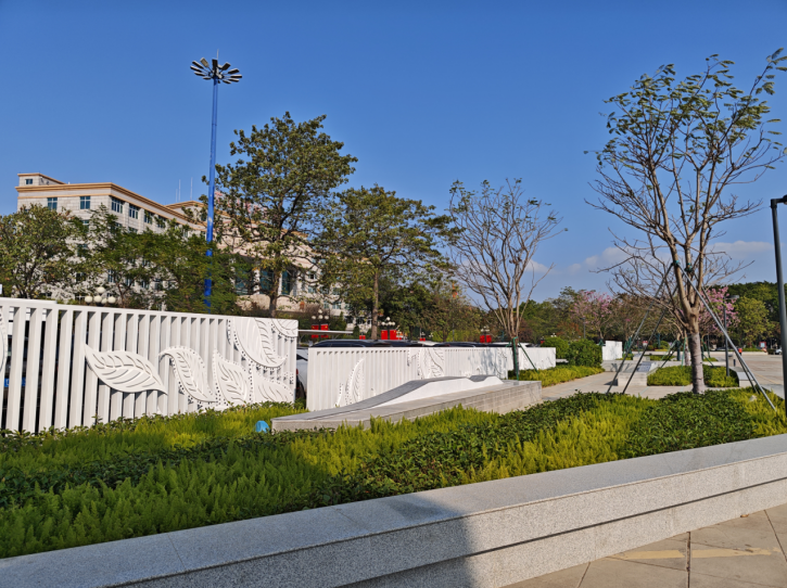 广场前的花安涌河道,宛如“客厅”中一条灵动的绿丝带,围绕着整座“客厅”缓缓飘动。经过系统整治的河道,不仅完成清淤、增设护栏与绿化,更通过拓展滨水慢行空间、美化岸线环境、提升水体自净能力,真正实现了“水清、岸绿、景美、人和”的愿景。市民可沿河漫步,亲近自然,切身感受生态文明建设的丰硕成果。这一湾碧水,仿佛流淌在“客厅”里的诗意,将生态涵养、休闲游憩与文化展示融为一体。